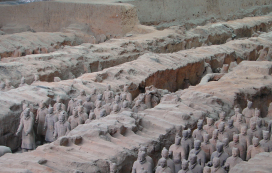 始皇帝陵から東へ1.5キロの地點に、世界八番目の不思議とも呼ばれる兵馬俑坑がある。1974年3月、かんばつに窮した地元農民が井戸を掘り始めたところ、二、三メートル掘ると変わった陶器の破片が見つかった。...