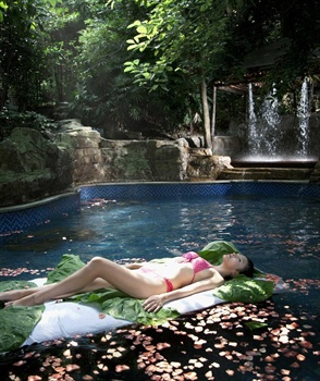 峨眉山紅珠山賓館坐落在世界自然與文化遺產——峨眉山山麓,與名剎“報國寺”相距不足200米。賓館擁有44萬平方米原始森林,10萬平方米天然湖泊,5000米散步小道,空氣負氧離子監測值為城市平均數的3000倍,可以說是一個種在山林里的酒店。   賓館總體布局背山面水,分散對應;單體建筑依山取勢,形成獨特的建筑向下延伸式構造,足不出戶,即可領略館內無與倫比的自然環境。俯視全館,9幢別墅式樓層分別掩映于峰巒之側,山谷之中,湖泊之隅,其間更有樓臺、水榭、小橋和客人專用散步小道相接,整體上形成自然風光和樓臺亭閣相融相生的獨有景致。炎炎夏日,足履其間,一路鳥語花香,密林漸行漸遠,牽你衣衫的是柔荊,戀你鞋的是草籽,呼吸著樹葉芬芳,有清涼從足底穿過,只透心脾。身居室內,建筑通體采光,落地起窗,陽臺深入林中,形成借景入房,房在景中,景隨人駐,人在畫中的極致,被著名作家金庸先生譽為:每一扇窗戶都是一幅風景畫,是您旅游出行、商務洽談的好住處。   賓館開業時間1958年01月,新近裝修時間2012年07月, 全部裝修,主樓高4層,客房總數70間(套)。 【溫馨提示】賓館不能刷卡。