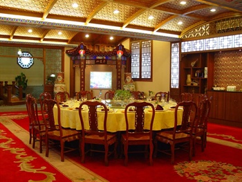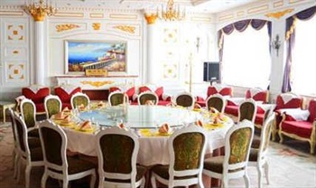 賓館還設有各類風格餐廳4個,包括鮑翅府、金海軒、金陽光、滿園春,可容納600余人同時就餐。餐廳裝飾華美、富麗堂皇,情調高雅,廚師可烹飪粵、魯、川、湖北、淮陽等各種地方各式美味佳肴,既可承辦多種形式的筵席、宴會,又能滿足零散賓館的飲食需要。