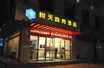 敦煌悅天商務酒店隸屬于敦煌悅天商貿有限公司,位于敦煌市中心鳴山北路299號,酒店于2011年6月全部竣工,占地面積為2600平方米,北鄰市政府廣場,毗鄰商業步行街及沙州夜市,地理位置優越,交通便利。   敦煌悅天商務酒店有各式客房50間,設施設備齊全,寬敞舒適,設計風格簡潔而不失豪華,主要以中式天井上下兩層建筑為主,設計風格為敦煌西部古典風格,極具敦煌藝術氛圍,中庭玻璃天井下懸掛敦煌莫高窟盛唐159窟蓮花藻井造型,酒店同時擁有可容納30-50人的現代化商務多功能會議廳,可供各式中小型會議及學術藝術交流提供便捷服務。完善、親切、自然的服務使每位賓客的商務、旅游、休閑、娛樂充滿舒心和愜意!   酒店開業時間2011年5月,主樓高5層,客房總數50間(套)。